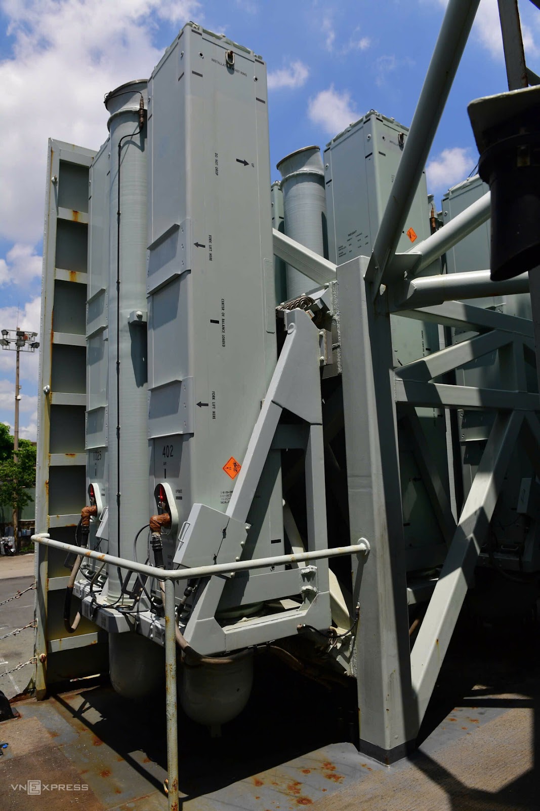 Cụm 4 ống phóng tên lửa diệt hạm Harpoon trên boong tàu.