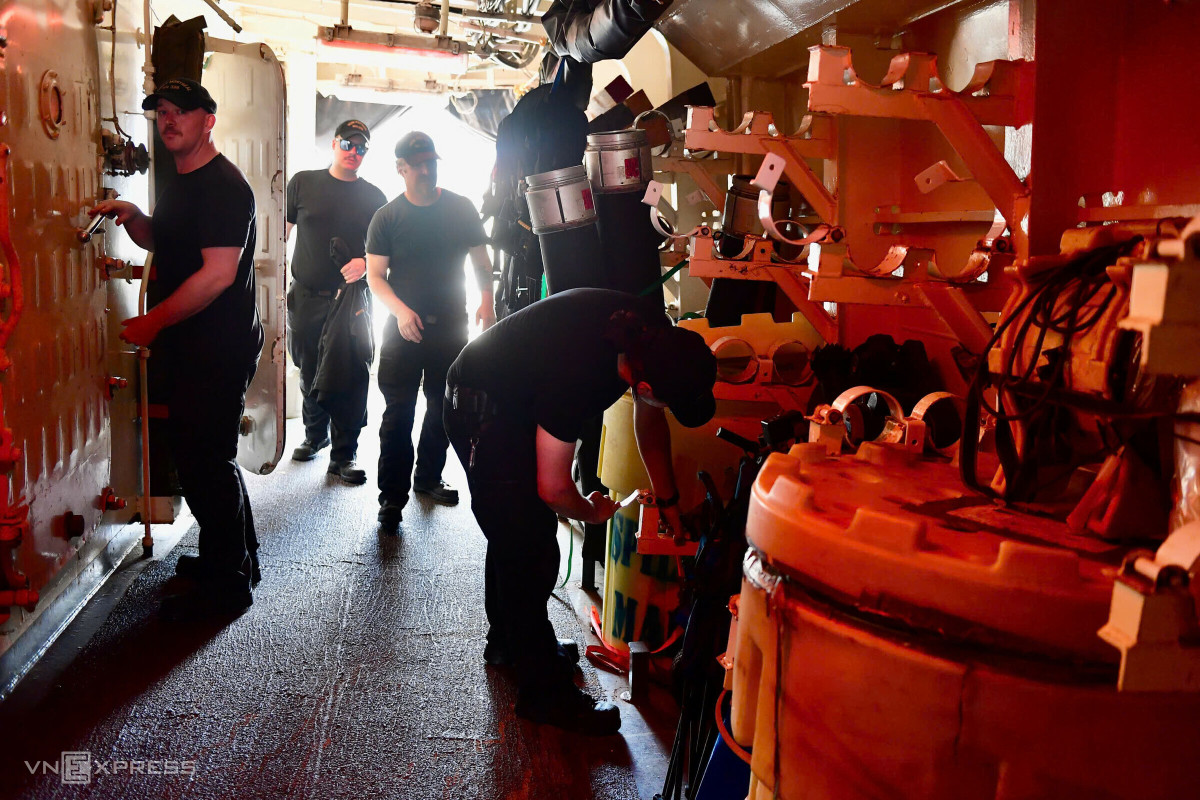 Thủy thủ đoàn HMCS Motreal bắt đầu công tác kiểm tra, bảo dưỡng tàu ngay khi cập cảng tại Bến Nhà Rồng.